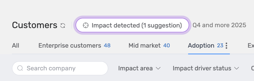 - Impact detected: this button shows suggested Impact Drivers based on the transition that is set up.