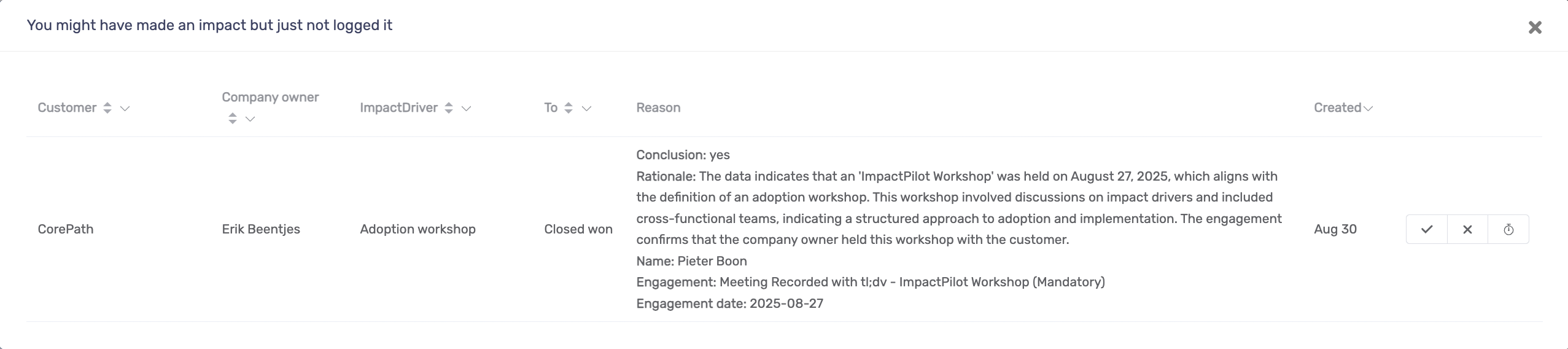 - If a HubSpot activity confirms an Adoption Workshop, the driver is suggested as closed.